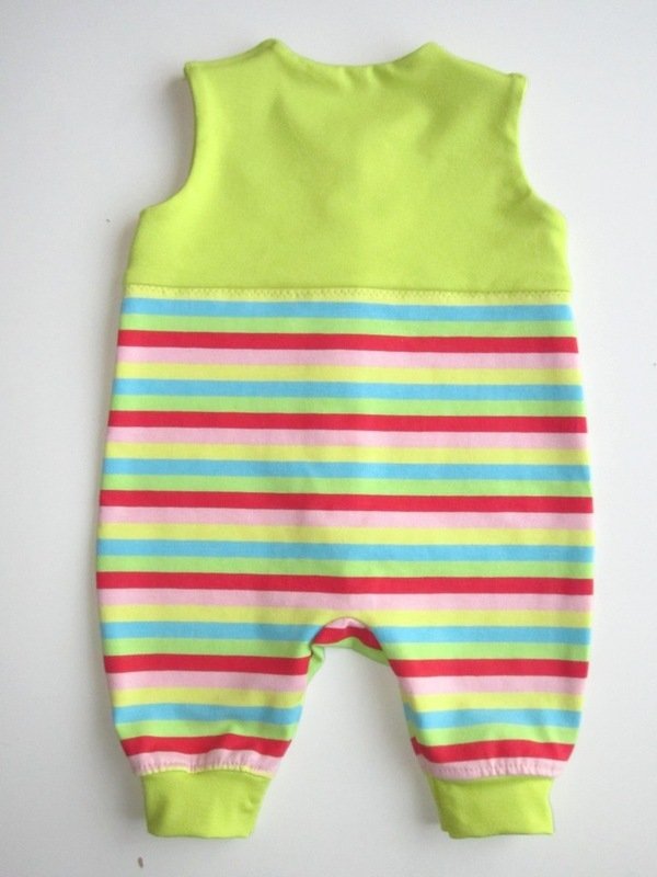 Gemütlicher Strampelanzug mit guter Passform, vorne mit durchgehender Knopfleiste zum leichten Anziehen. Im Schritt ist ein kleiner Zwickel für mehr Bewegungsfreiheit, der Beinabschluss endet mit einem Bündchen.