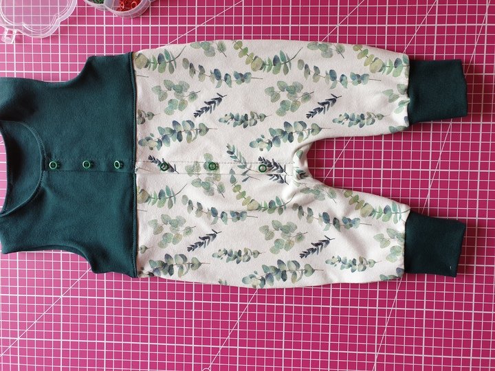 Jerseystoff, auch gut als Kombination zweier Stoffe, 4-5 Knöpfe oder Drucker