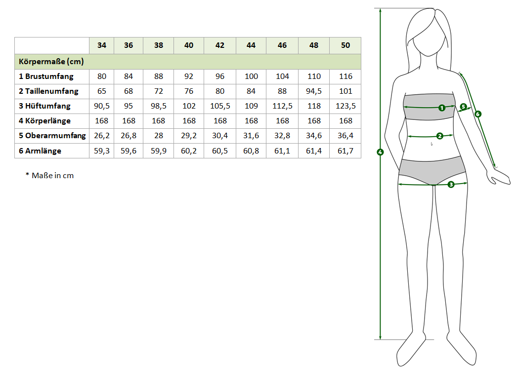 Brustumfang: 80 bis 116 cm