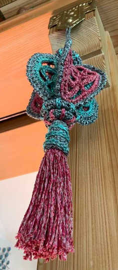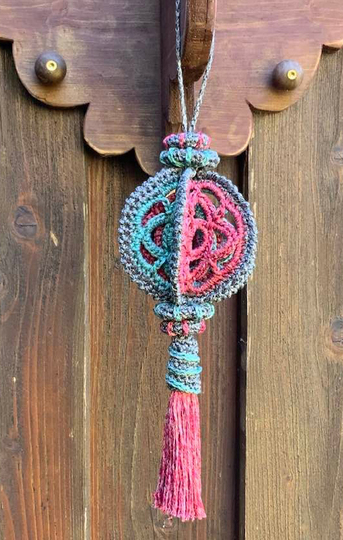 Kugel/ Quaste "Six" eine spannende Quaste oder auch ein Christbaumschmuck...der viele FarbVariationen zu lässt ......wunderschön auch als Schmuck für Deine Schrankschlüssel....oder für den Rückspiegel..und vieles mehr.....