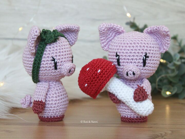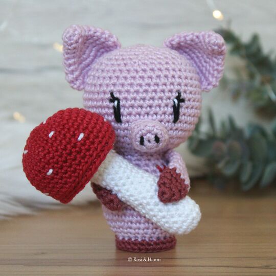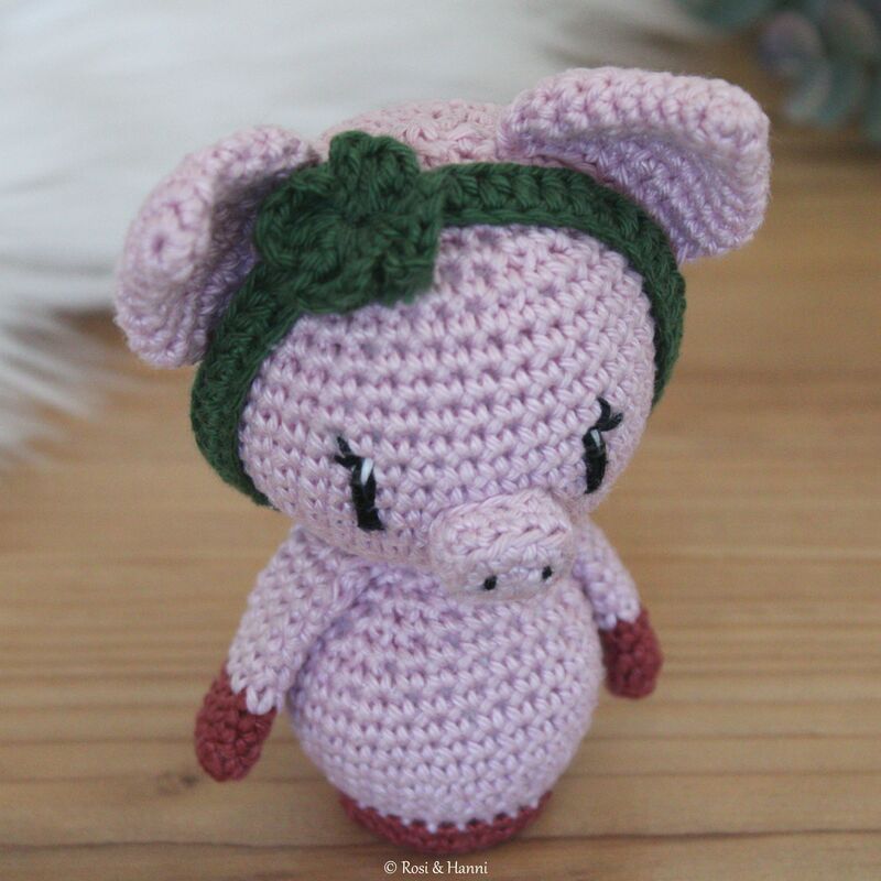 Häkelanleitung "Glücksschwein Amanda mit Kleeblatt und Fliegenpilz“