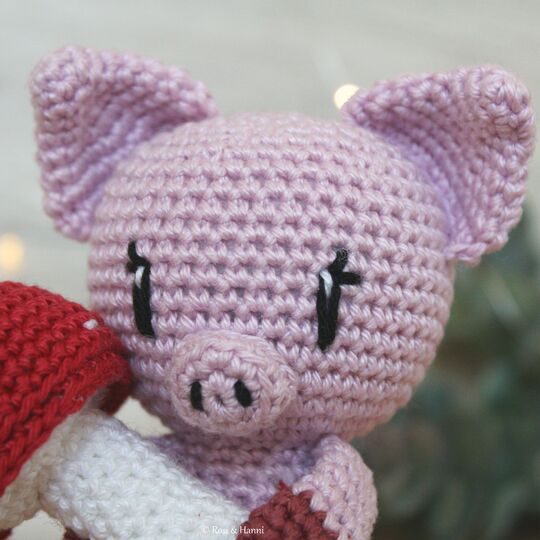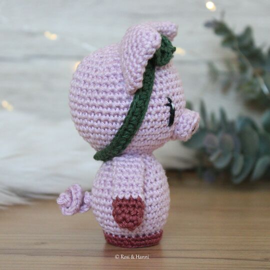 "Glücksschwein Amanda" wird bei angegebener Wolle und Häkelnadel ca. 11 cm groß (mit Ohren).