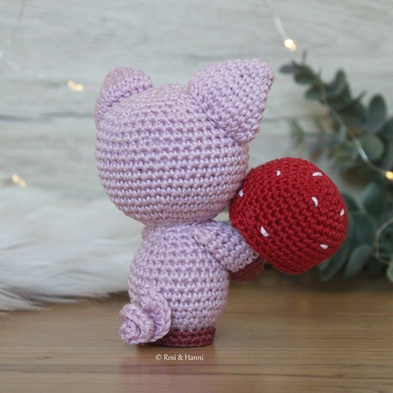 Erforderliche Kenntnisse: Häkeln in Runden & Reihen, magischer Ring, Luftmaschenkette, Luftmasche, feste Masche, Kettmasche, halbes & ganzes Stäbchen, Zu- und Abnahme, Farbwechsel, Aufsticken von Augen und Herz, Zusammennähen der einzelnen Elemente
