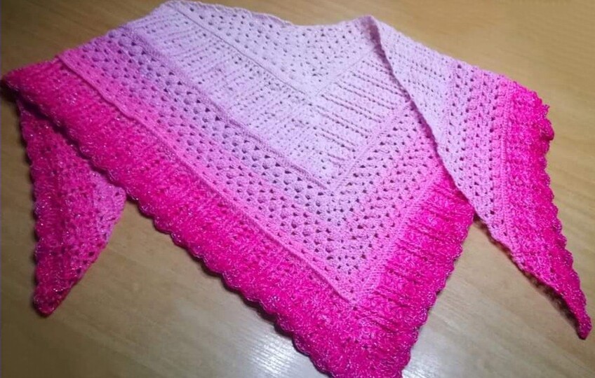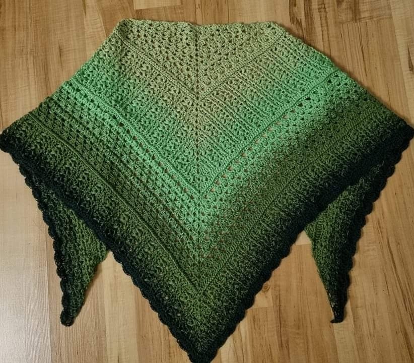 Wer es mit normalen Nadelstärken häkelt, erhält ein Tuch welches von der Größe her für Kinder geeignet ist.