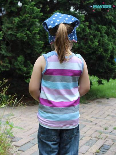 Das Schnittmuster Nähpuls Sommertop Girls gibt es in den Einzelgrößen 80 bis 128. Das Highlight ist das geteilte Schulterteil. Es ist für schmale bis normal gebaute Kinder konzipiert! Für Mädchen ist es ein ausgestelltes Top, etwas über den Po reichend. Das Schnittmuster ist auf Jersey ausgelegt. Der Armabschluss kann sowohl mit Streifenversäuberung, als auch mit Bündchen genäht werden.