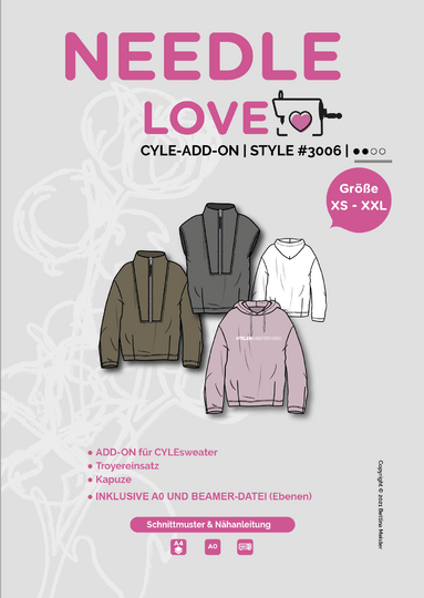 Kapuze und Troyer - 2 neue Varianten für den coolen Oversized-Sweater in O-Shape-Silhouette. Bitte beachte, dass Du das Basis-Schnittmuster CYLE benötigst.