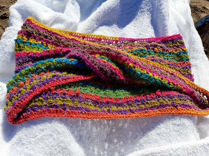 Dieser kleine Möbiusloop ist das perfekte Projetz für zwischendurch. Nur einfache Stäbchen und als Akzent die Perlenstäbchen, schon ist der Loop fertig. In jeder Länge oder Breite häkelbar.