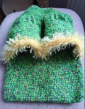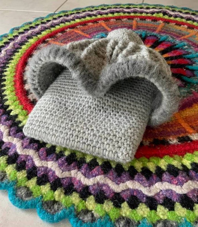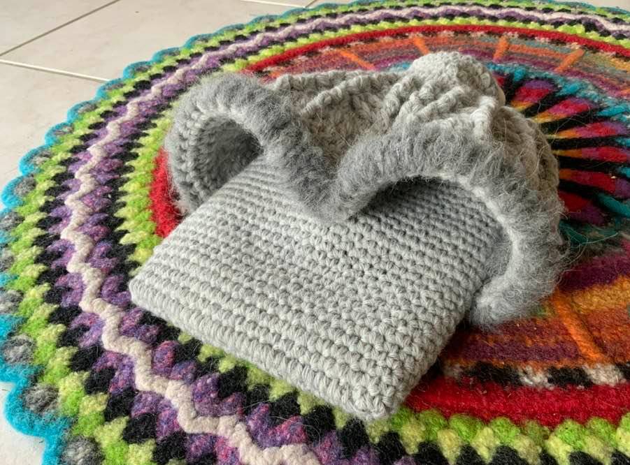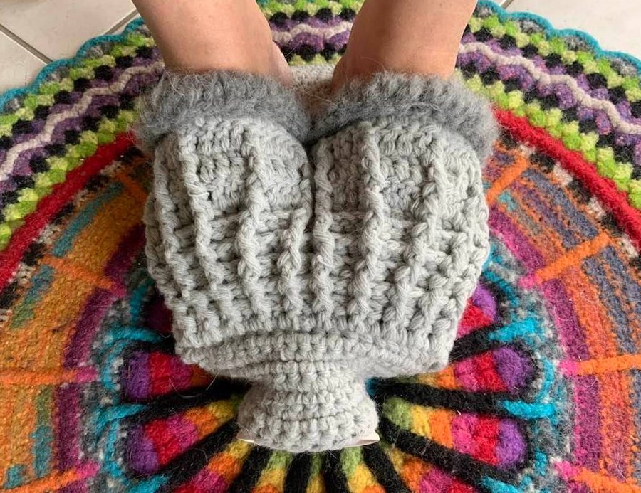 Diesen Fusswärmer gibt es auch in gestrickt: