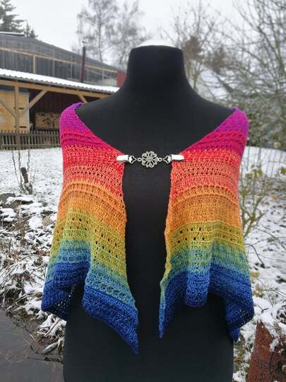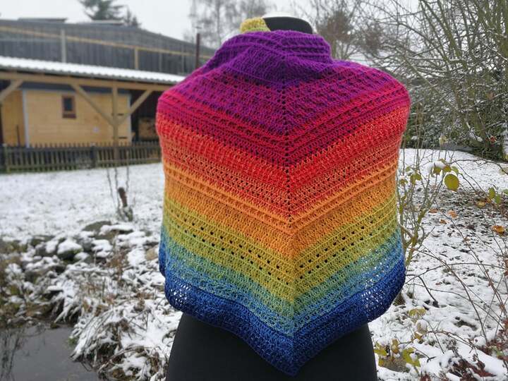 Die Anleitung ist schriftlich und bebildert, sie beinhaltet KEINE Häkelschrift. Auf 22 Seiten bekommst du beschrieben wie du zu diesem tollen Tuch kommst. Es ist bis Reihe 72 ausgeschrieben.