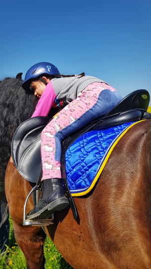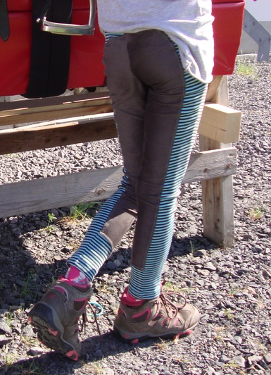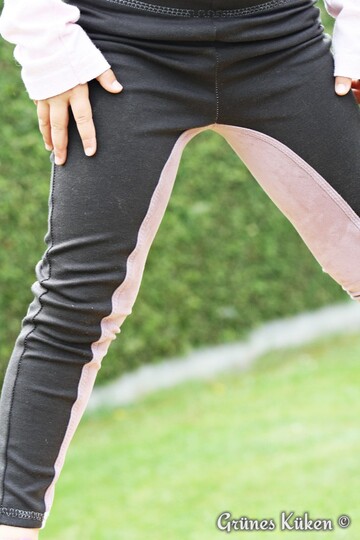 Das Schnittmuster Reithose Ride On Teens mit Vollbesatz ist für dehnbare Materialien konzipiert. Wer eine Reithose nähen möchte, muss darauf achten, dass das Beinteil/Besatz aus rutschhemmenden Material, wie dehnbares Wildlederimitat, elastisches Waschleder oder Jeans mit Elasthan ect. ist. Das Vorder-und Rückteil bei der Reithose muss zwingend aus sehr elastischem Stoff, wie Jersey, Sommersweat oder Romanit Jersey ect. genäht werden. Für eine Turnhose im Reithosenstil können Jersey oder Sommersweat verwendet werden. Die Reithose Ride on ist in den Größen 134 bis 170 gradiert und für normal bis schmal gebaute Mädchen geeignet. Der Bundabschluss wird mit 3 cm Gummiband genäht.