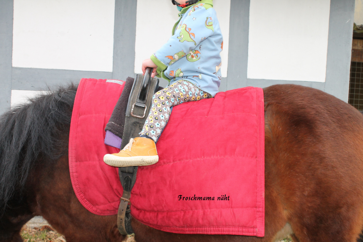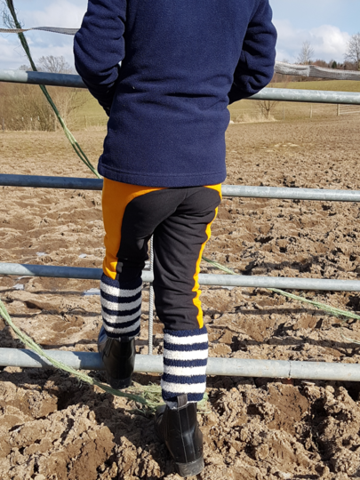 Das Schnittmuster Ride On Boy Reithose mit Vollbesatz ist für dehnbare Materialien konzipiert. Als Spielhose im Reithosenstil kann Jersey oder Sommersweat verwendet werden. Wer eine richtige Reithose zum Reiten nähen möchte, muss darauf achten, dass das Beinteil aus nicht rutschigem Material, wie Cord, Jeans mit Elasthan, dehnbares Wildlederimitat oder Waschleder ect. ist. Das Vorder-und Rückteil bei der Reithose wird aus sehr elastischem Stoff, wie Jersey, Sommersweat oder Romanit Jersey ect. genäht. Die Reithose Ride on ist in den Größen 80 bis 128 gradiert und für schmal bis normal gebaute Jungen geeignet.