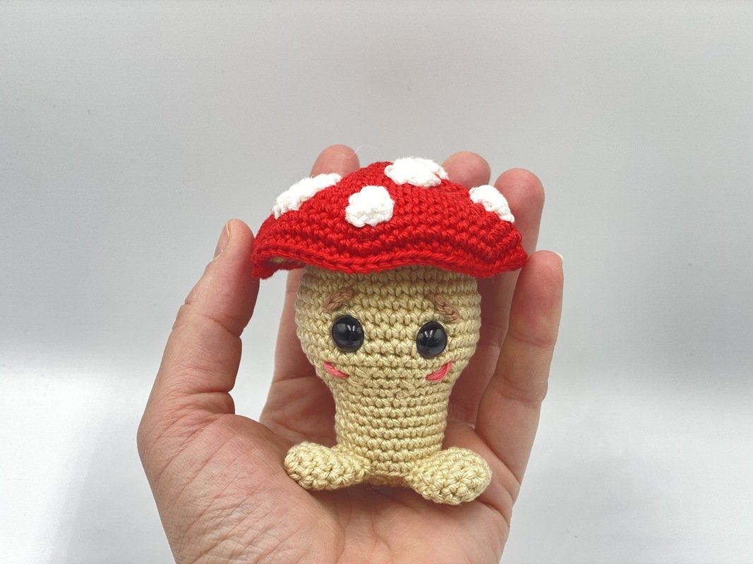 Mit dieser Häkelanleitung kannst du sehr einfach diesen süßen Pilzkopf nachhäkeln.