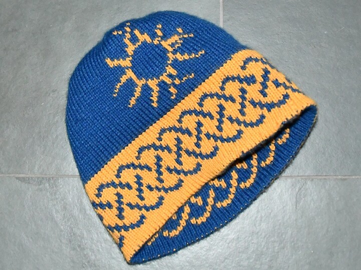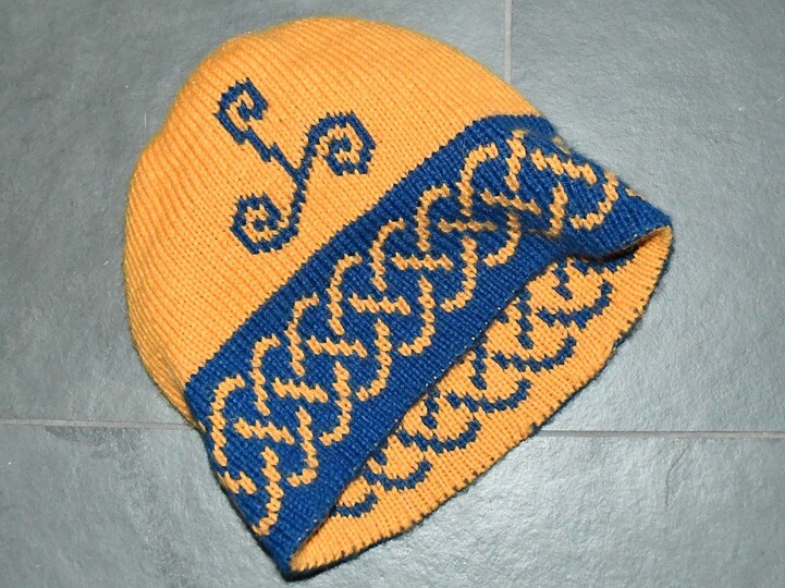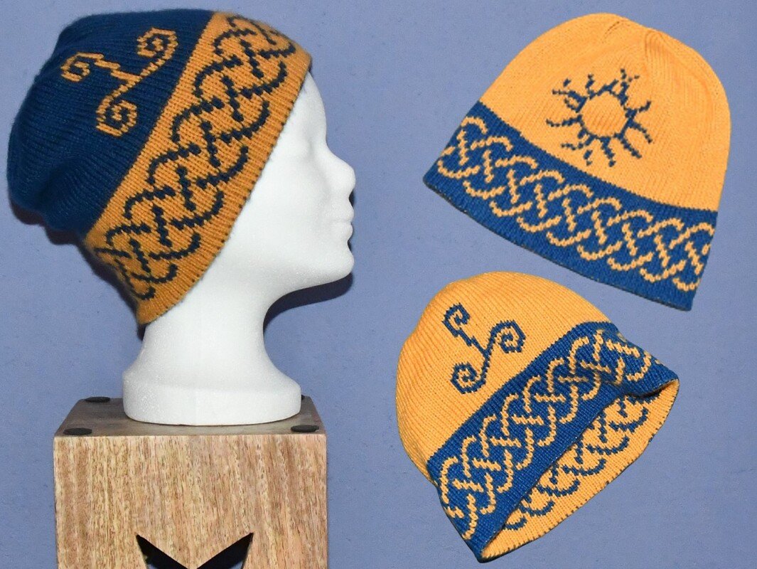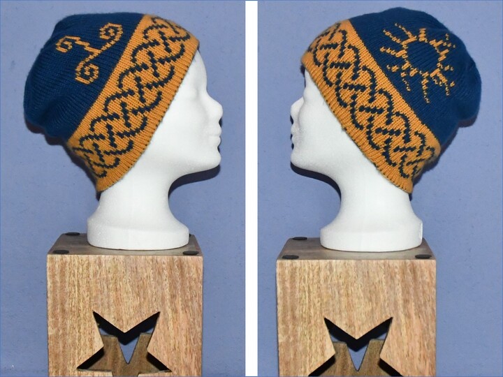 Diese Wende-Mütze mit den keltischen Motiven ist ein ganz toller Hingucker. Und natürlich hält sie auch schön warm. Sie passt ideal zum Kuschelloop „Keltische Sonne“, für den es in meinem Shop eine separate Anleitung gibt. Aber selbstverständlich kannst Du die Mütze auch solo tragen. Den Umfang der Mütze kannst Du individuell bestimmen und so an die gewünschte Größe anpassen.