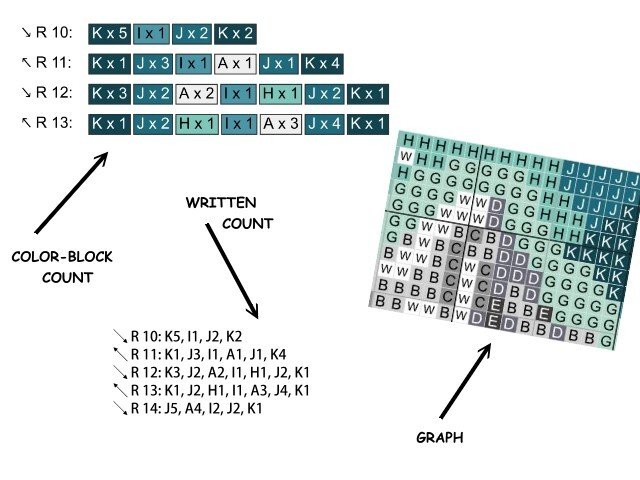-die eigentliche Grafik in Farbe & Buchstaben (Quadrate)