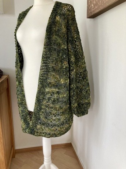 Beim vorgestellten Produkt handelt es sich nicht um das fertige Werk, sondern um eine Anleitung, um die Jacke selbst zu häkeln.