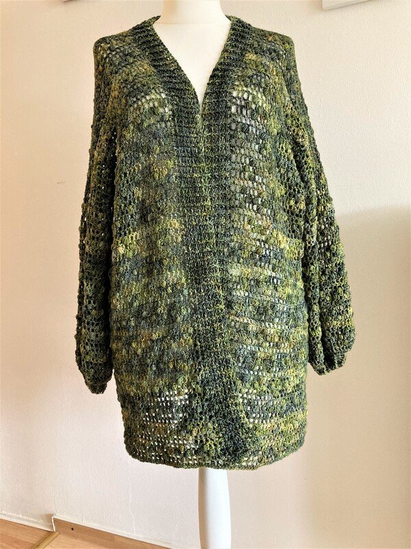 Die Länge der Jacke kann einfach durch das Häkeln von zusätzlichen Reihen an eure Vorlieben angepasst werden.