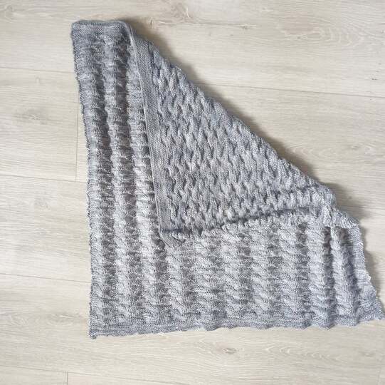 Und wie alle meine Babydecken ist sie nur mit rechten und linken Maschen gestrickt, damit sich die kleinen Finger nirgendwo verhaken können und damit die Eltern nicht auf Vorder- und Rückseite achten müssen.