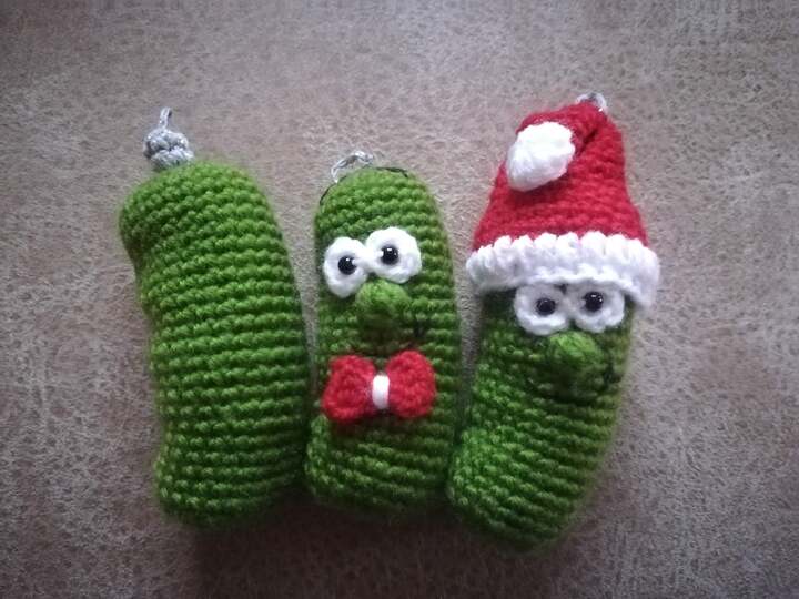 Dies ist eine Häkelanleitung für eine Weihnachtsgurke mit Fliege Mütze oder Krone.