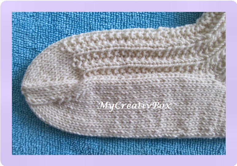 In der Anleitung werden Ferse und Spitze nicht näher erläutert; diese werden in gewohnter Arbeitsweise gestrickt.
