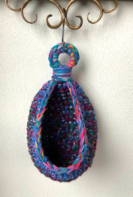 CoCon- Utensilo aus Wollresten ..einfach an einen Haken oder Nagel hängen..und hinein passt Alles mögliche: Badezimmeruntesilien , Schlüssel, was nettes für Ostern, Geburtstage .....oder wie hier auf dem Foto ein MINI-Orchidee