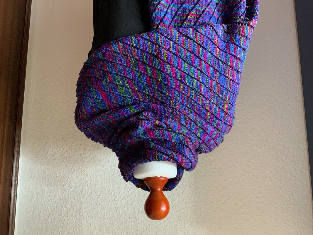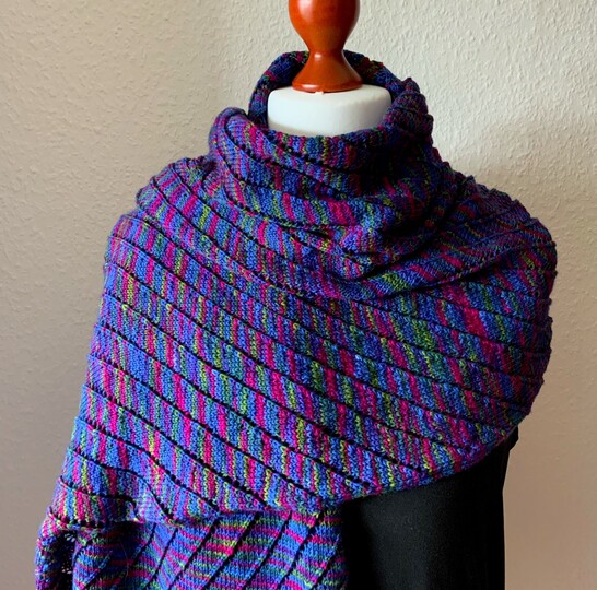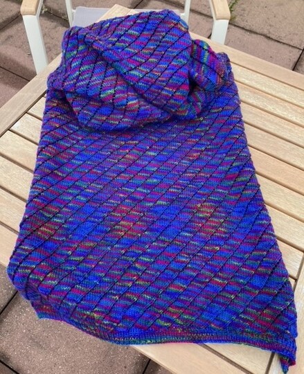Die beste Optik erreicht man, wenn man ein farbenfrohes Garn verwendet. Das einfache Muster kann man nach wenigen Reihen und es geht dann flott von den Nadeln.