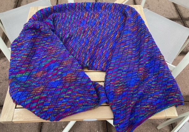 hier verwendet: 300 g Lacegarn von Rohrspatz & Wollmeise, 100 % Wolle (Merino), superwash, handgefärbt, Lauflänge 525 m/100 g in der Farbe Nobody is perfect - Pfauenauge
