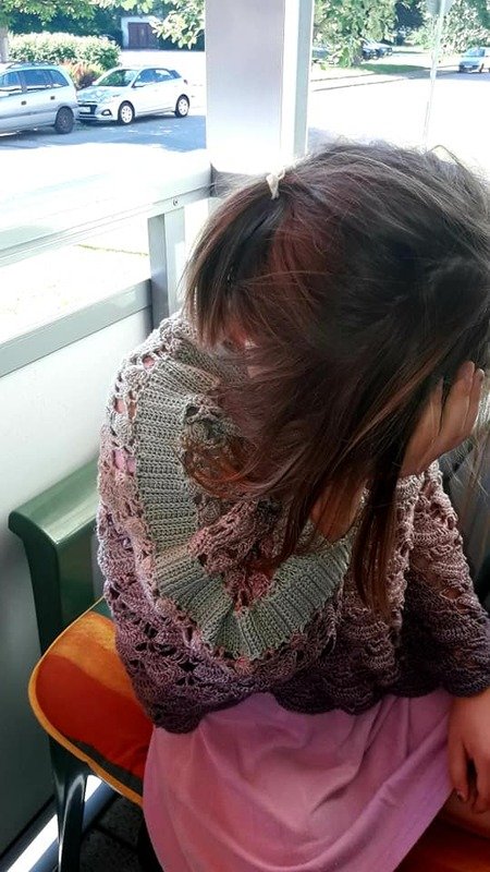 Das Besondere an diesem Kleidungsstück ist, dass es mit einem Bobbel am Stück gehäkelt wird, obwohl ein Ärmel vorhanden ist. So kann ein Verlaufsbobbel wunderbar ohne Absetzen zum Tragen kommen.