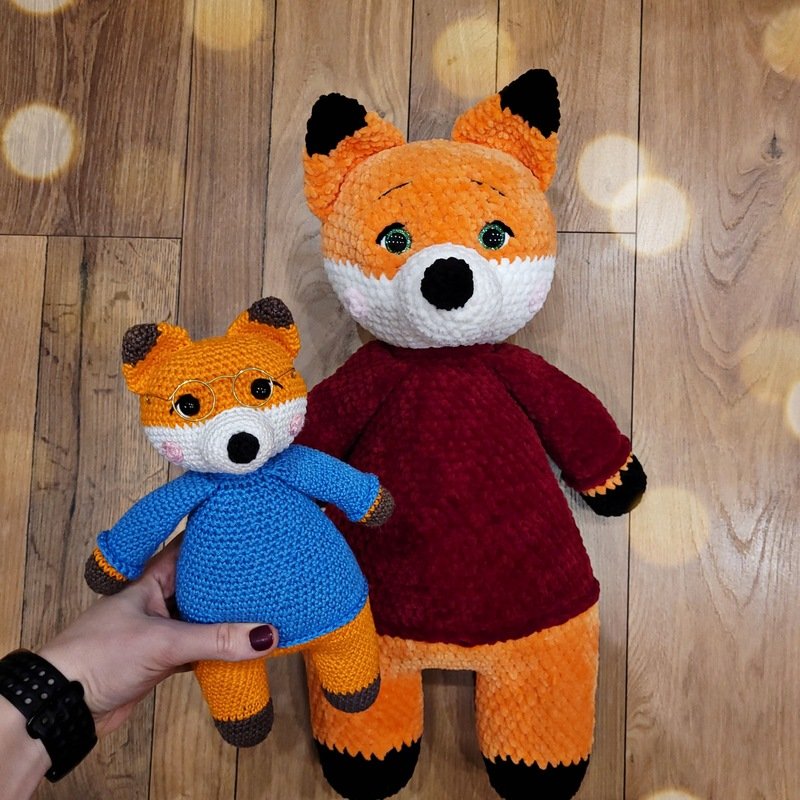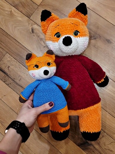 Man benötigt für die Farbe des Fuchses (Orange) 2 Knäul und für den Pulli 2 Knäul.
