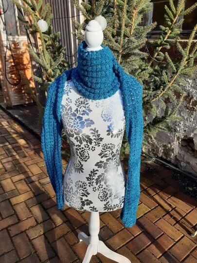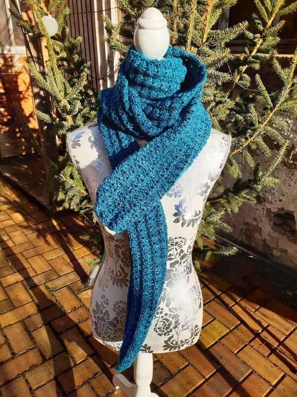 Ihr könnt selbstverständlich auch eine andere Wolle / Farbe / Nadel für den Schal verwenden.