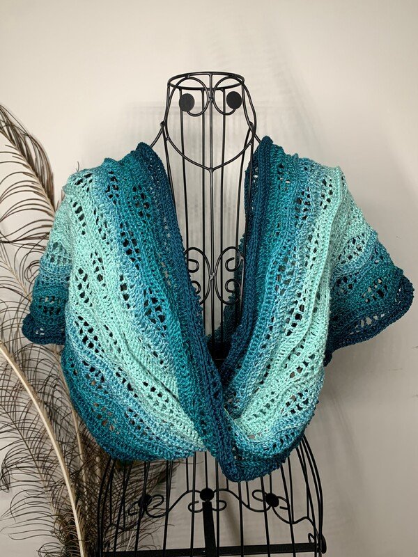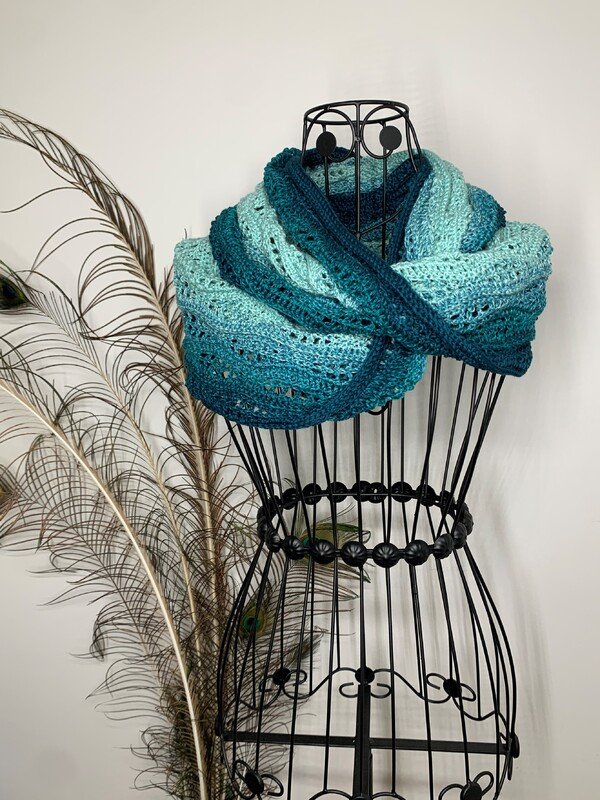 Der Loop besteht aus einem Mustersatz von 16 Maschen pro Mustersatz, daher kann die Länge des Loops sehr einfach angepasst werden. Du kannst ihn einfach häkeln, sodass er nur einmal um den Hals geschlungen wird, oder, wie auf den Bildern gezeigt, doppelt. Hier hast du alle Möglichkeiten!