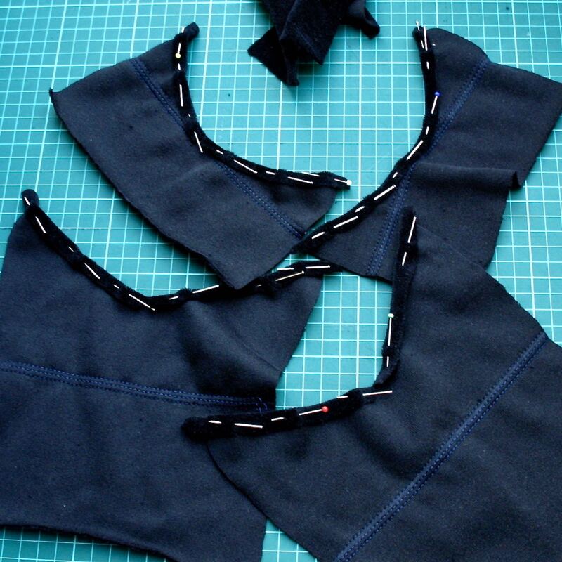 dehnbares Material wie Jersey, Nicky, Strick etc.