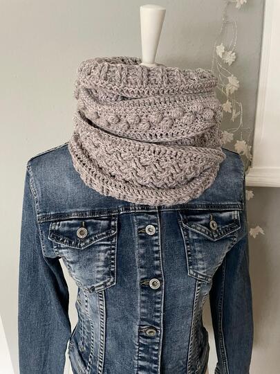 Tuch Kenntnisse: Luftmaschen, feste Maschen, halbe/ganze Stäbchen, vordere/hintere Reliefstäbchen,