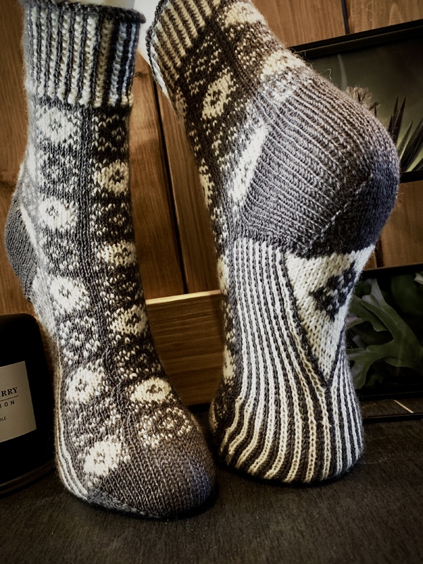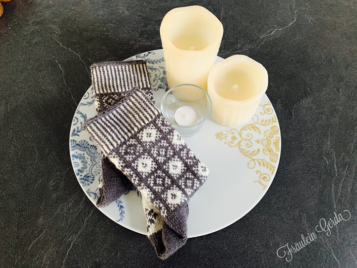 Inspiriert durch unseren letzten Urlaub, in dem wir teilweise mittelalterliche Burgen gesehen haben und in Anlehnung an diese prächtigen Wappen, sind nun diese Socken entstanden.