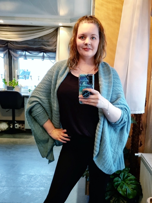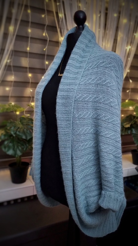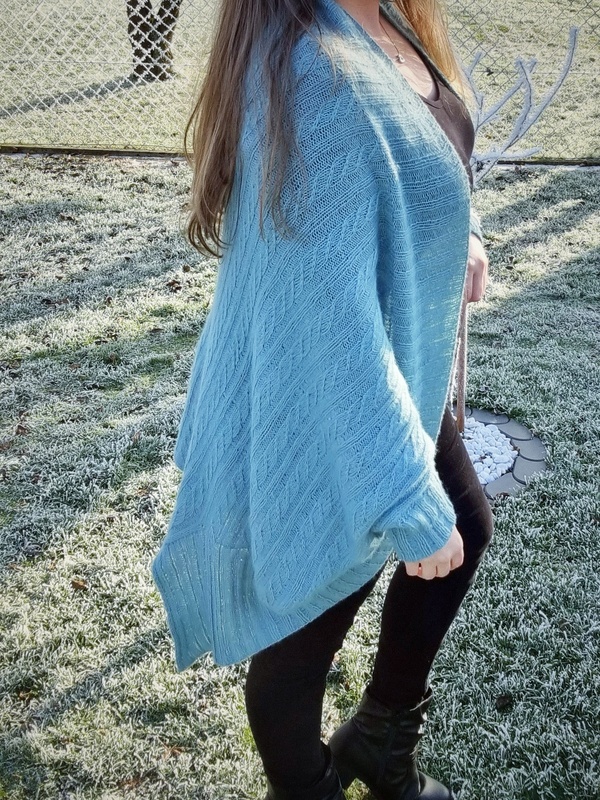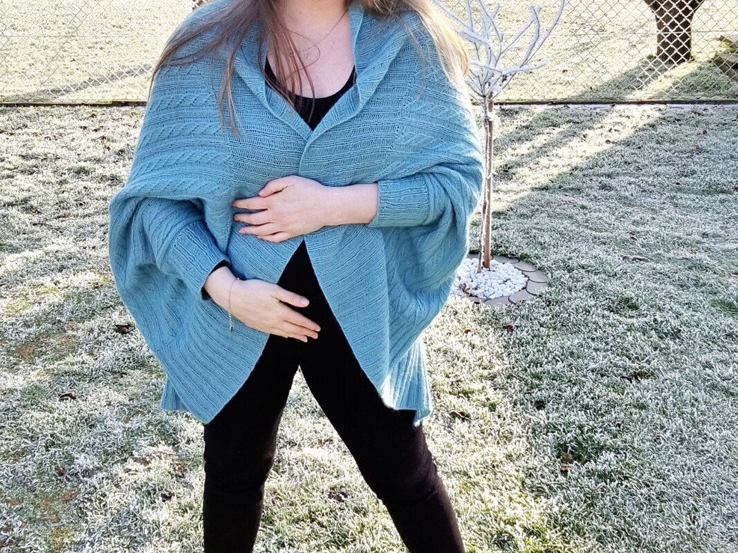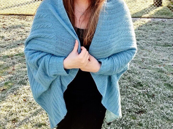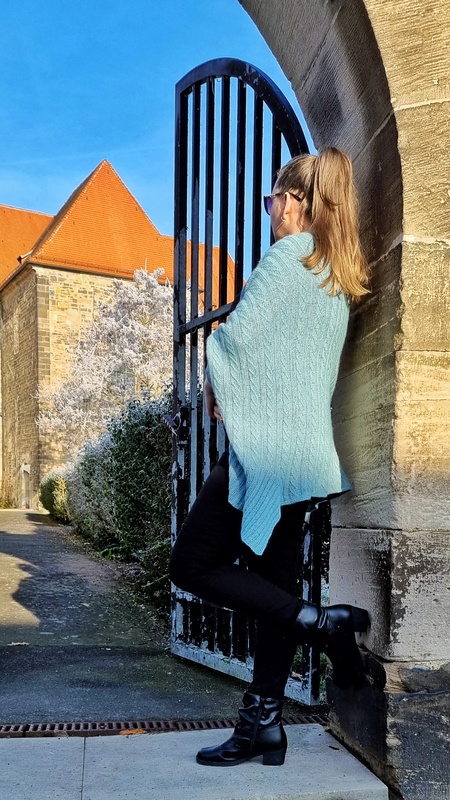 Der Twisted Left Seelenwärmer ist eine Mischung aus Poncho, Jacke und Bolero und wird ganz einfach als Rechteck gestrickt, gefaltet und vernäht und hält dich wie eine liebevolle Umarmung in diesen stürmischen Zeiten warm.
