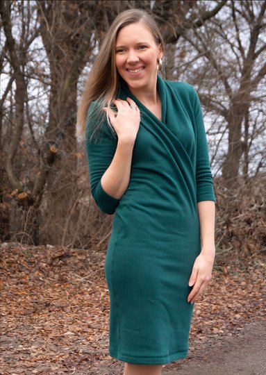 Hermine ist ein Schnittmuster für ein elegantes Kleid oder Shirt im Wickellook. Der Ausschnitt sitzt durch den wasserfallartigen Kragen halsnah, wodurch Hermine das perfekte Winterkleid ist. Außerdem betont er ganz dezent das Dekolleté. Gleichzeitig kaschiert Hermine ganz wunderbar die Körpermitte, macht aber trotzdem eine schöne Silhouette. Hermine ist schnell genäht und bereichert deinen Kleiderschrank mit schlichten Wickelshirts oder feminimen Wickelkleidern.