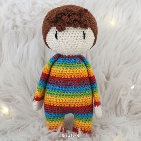 Mit dieser ausführlich beschriebenen und bebilderten Anleitung kannst du "Regenbogen Robin“ ganz einfach nacharbeiten. In der Anleitung sind beide Haarvarianten enthalten, so dass sich dir viele verschiedene Gestaltungsmöglichkeiten bieten. Zum Verschenken, Weitergeben oder selbst behalten, mache dir und anderen mit einem persönlichen Glücksbringer eine ganz besondere Freude.