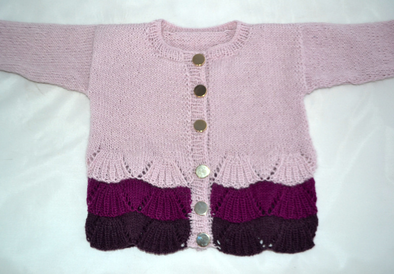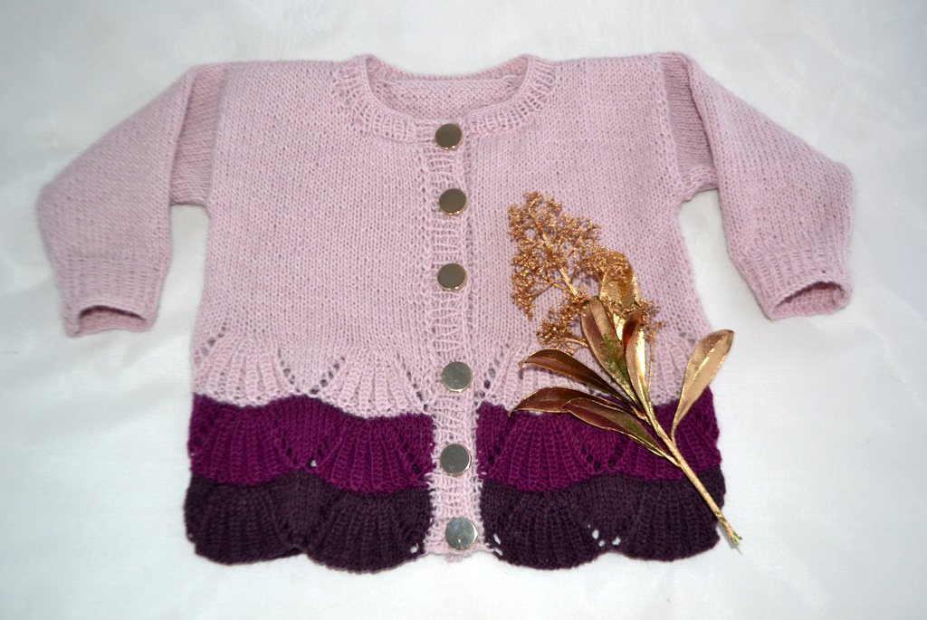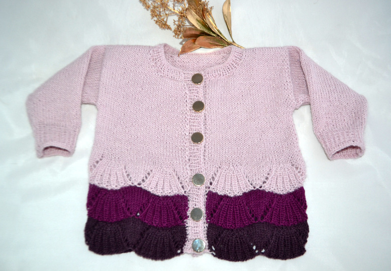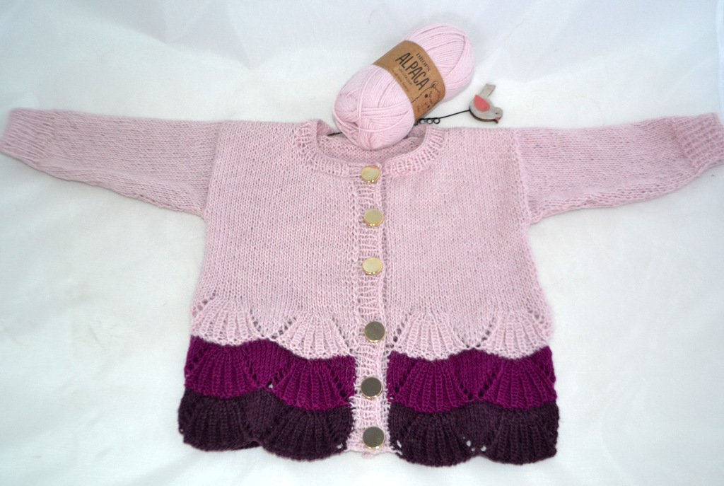 Eine niedliche, elegante Jacke für Mädchen aus feinem Alpaka Garn - perfekt also für die ersten großen Auftritte bei den Liebsten. Klassisch geschnitten mit einem Fächermusterspitze passt es in den Alltag und zu festlichen Anlässen.