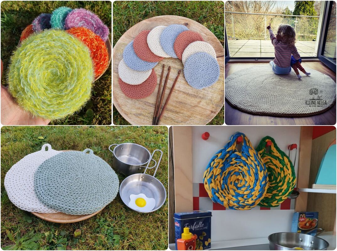 Diese 12-seitige, bebilderte Anleitung ist unglaublich vielseitig einsetzbar. Du kannst damit alles häkeln, was rund und flach ist (zb. einen Teppich, Topflappen, Platzsets, Kosmetikpads, Peelingpads,...). Deiner Fantasie sind hier keine Grenzen gesetzt. Einige Beispielbilder habe ich dir ja mitgebracht :-).