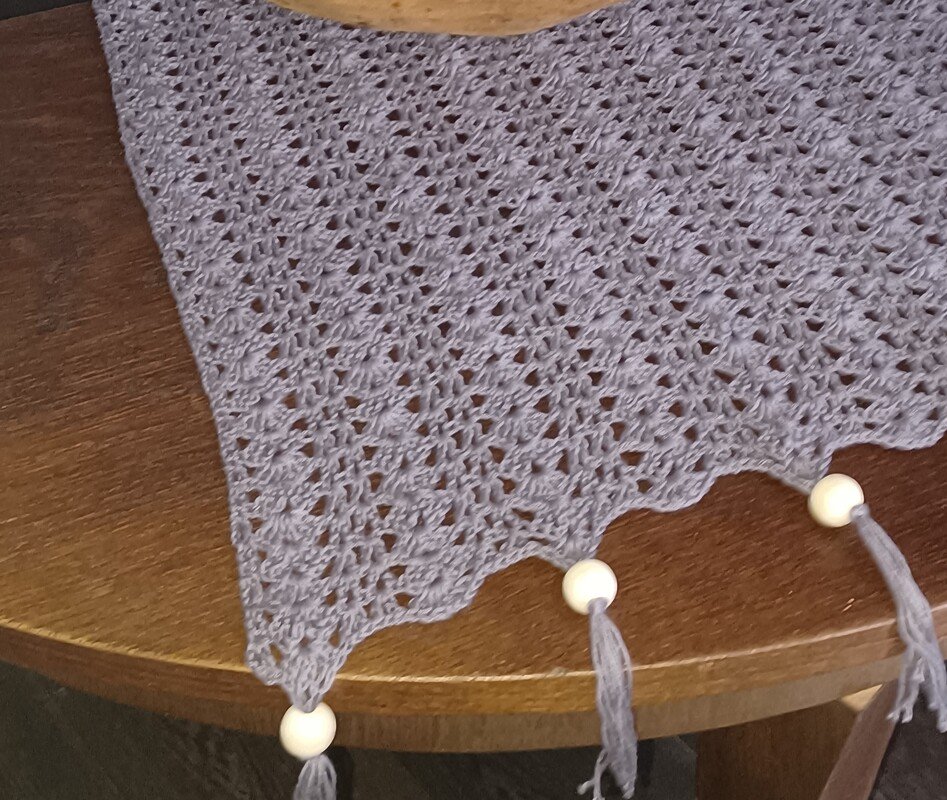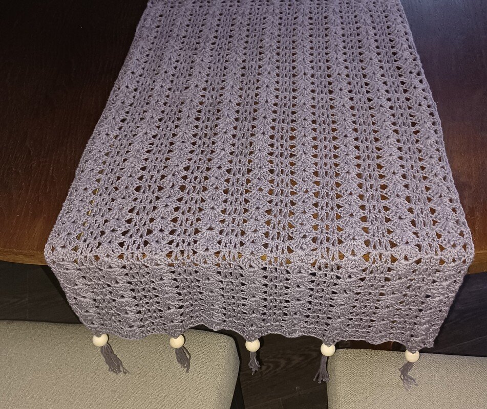 Der hier beschriebene Tischläufer hat eine Größe von 50 cm c 150 cm, kann jedoch ganz leicht auf euer Maß gearbeitet werden.Wie steht in der Anleitung.