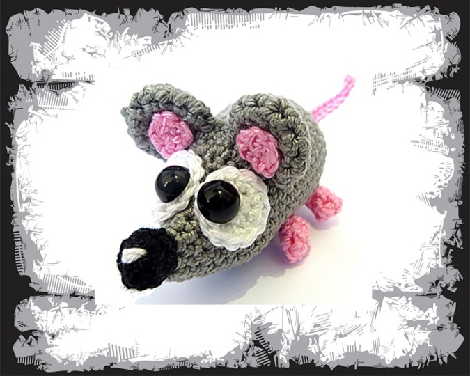 Die fertige Maus wird ca. 9cm lang. Natürlich kann die Größe variieren, je nachdem ob man fest oder locker häkelt. Auch die Wahl der Wolle ist entscheidend. Ich selbst häkle mit Apollo Baumwollgarn 125m/50g (100% Baumwolle).