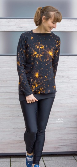 ISTRANA Sweater bekommst du in den Größen 34-56. Der Schnitt enthält 2 Längen. Zusätzlich kannst du zwischen einer Croplänge, abgerundeten Saumlänge oder Saumbündchen wählen. Im Schnitt ist auch eine Astronautenkapuze sowie die Möglichkeit von zwei Halsbündchenweiten enthalten. Bei den Ärmeln kannst du zwischen lang- oder kurzärmlig wählen.