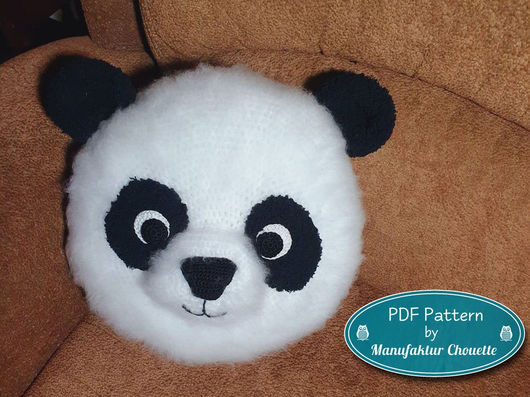 14 Seiten ausführliche schriftliche Häkelanleitung mit vielen Fotos für ein Pandakissen