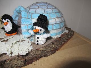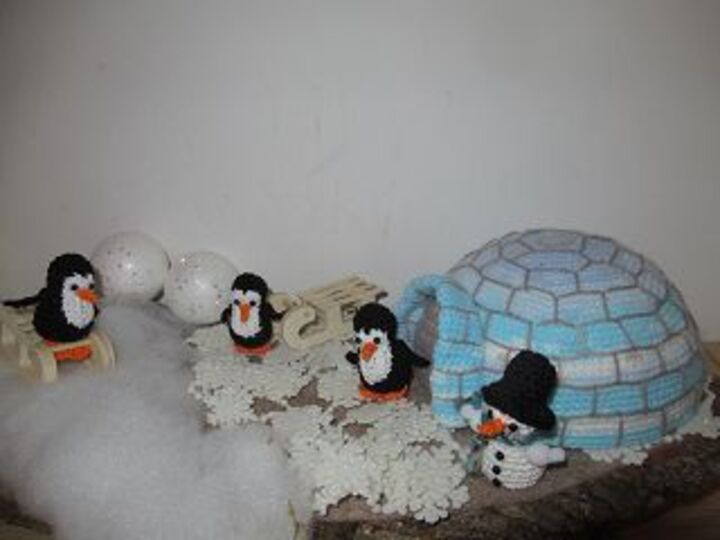 Eine tolle Resteverwertung für eine winterliche, aber nicht weihnachtliche Dekoration: Der Iglu mit Pinguinen und Schneemann ist schnell gehäkelt und sehr dekorativ.