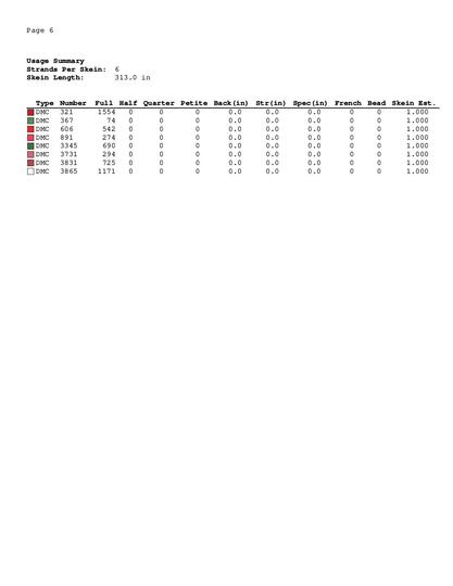 A Symbol Key page in DMC floss code
