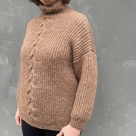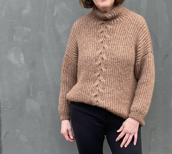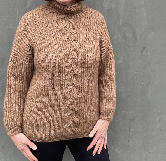 Der Pullover Mona ist ein klassischer Halbpatentpullover mit einem Zopfmuster. Er ist leicht oversized geschnitten und hat weite gemütliche Ärmel. Er ist nicht nur für die ganz kalten Tage geeignet, sondern auch ein perfekter Frühlingsbegleiter.