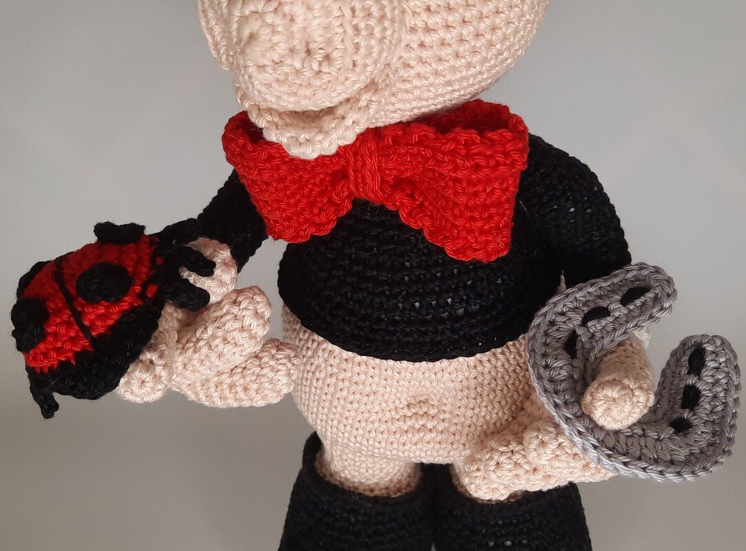 Ich habe die Figur mit einer Nadelstärke von 2- 2,5 und Schachenmayr Catania bzw. Scheepjes Catona gearbeitet.