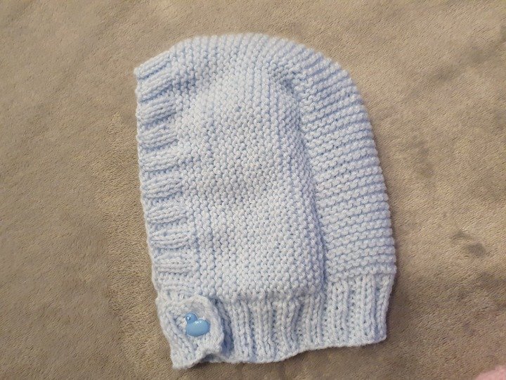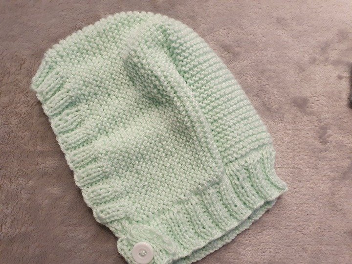 Diese liebevoll gestrickte Kapuzenmütze hält das empfindliche Köpfchen und die kleinen Öhrchen deines Babys wohlig warm. Dank ihres durchdachten Designs mit praktischem Knopfverschluss muss sie nicht über den Kopf gezogen werden, was das An- und Ausziehen besonders angenehm macht – ideal für Babys, die es nicht mögen, wenn etwas über ihr Gesicht gestreift wird. Außerdem bleibt die Mütze beim Liegen zuverlässig an Ort und Stelle, ohne zu verrutschen.