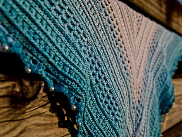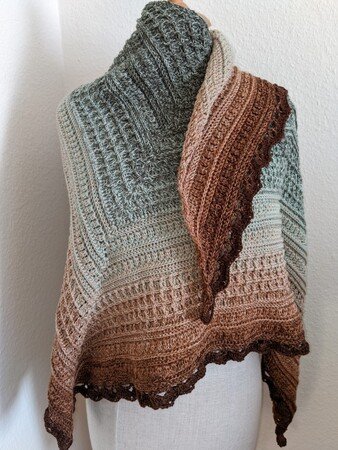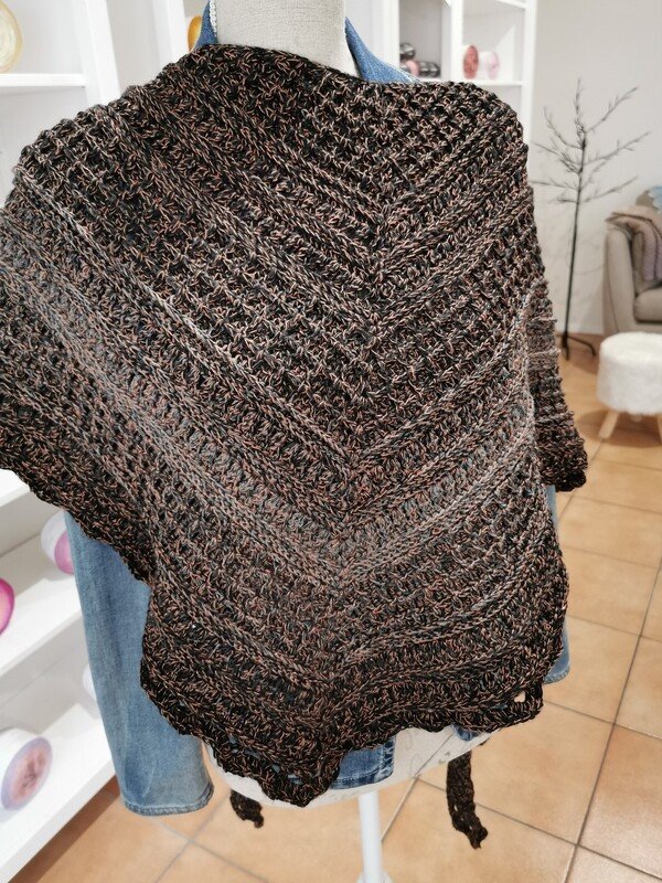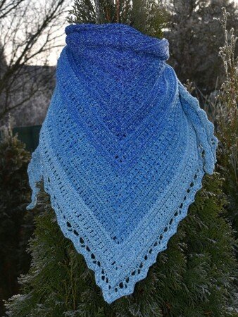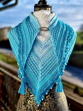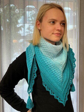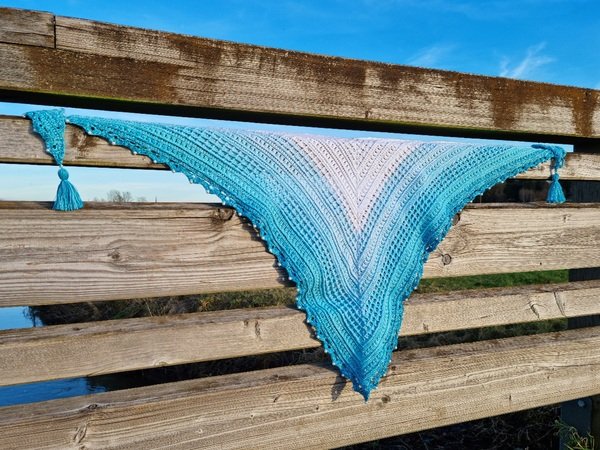 Winterflair ist ein dichtes Dreieckstuch mit einem effektvollen Muster, passend für jede Jahreszeit, besonders für kühlere Tage. Es kann mit oder ohne die Abschlusskante gehäkelt werden.
