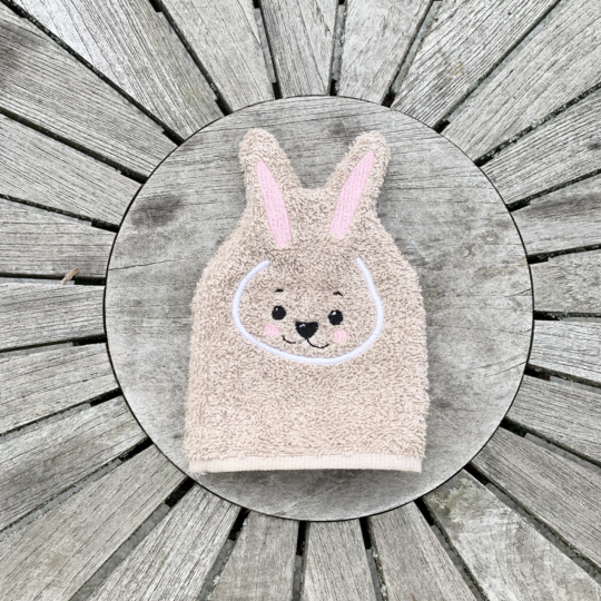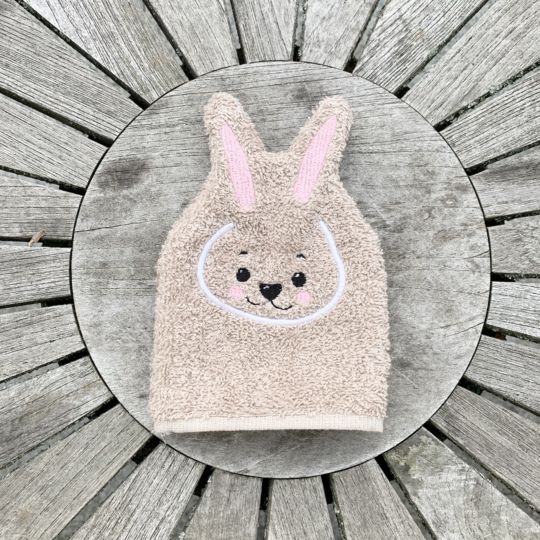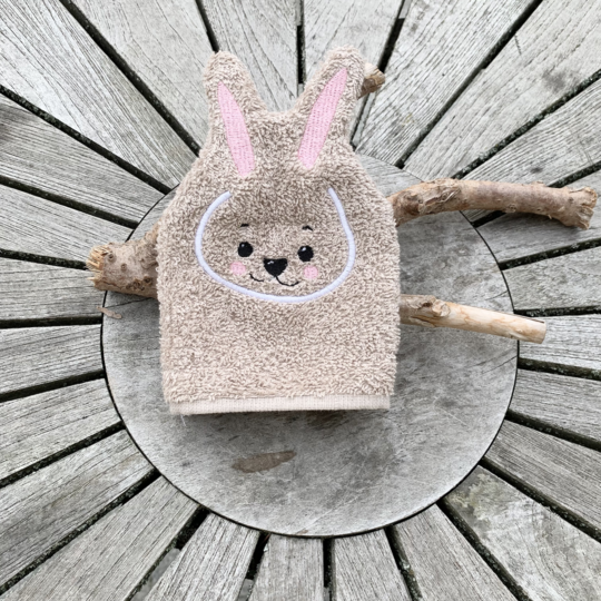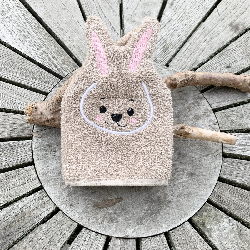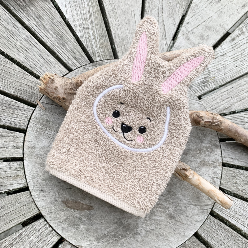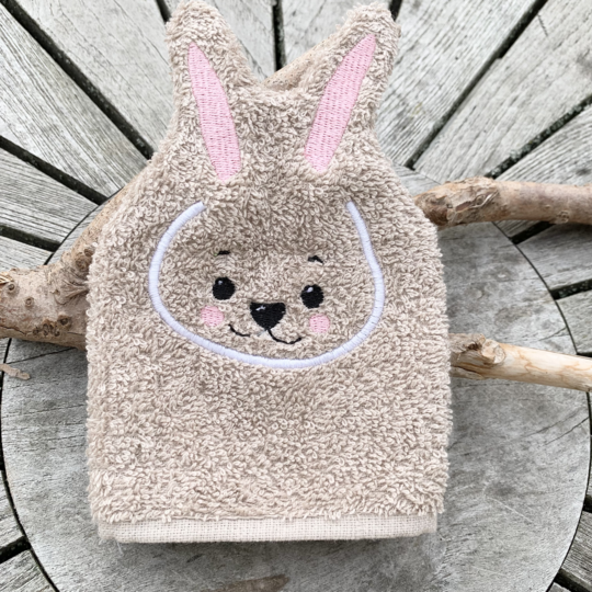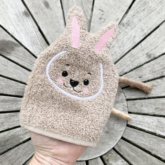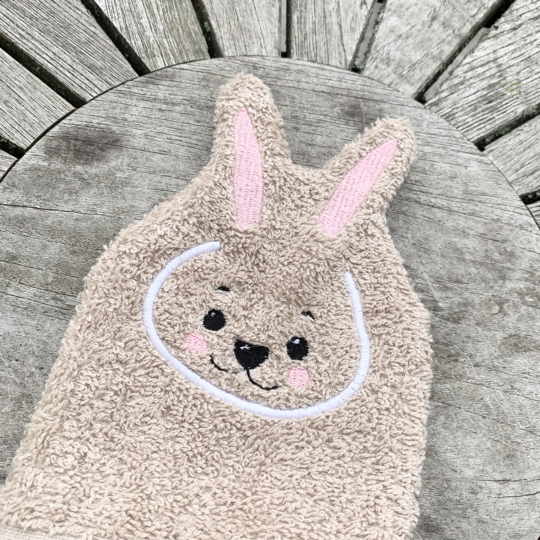 Hasen-Waschlappen als ITH-Datei d.h. er wird komplett in der Stickmaschine hergestellt.