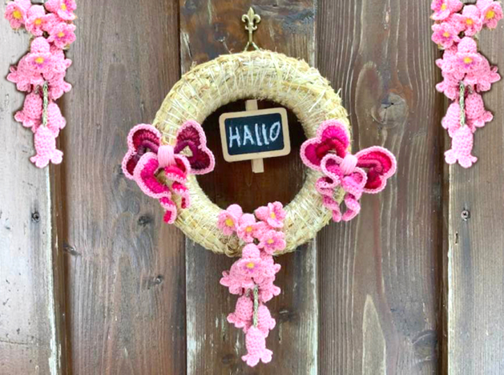 Frühlingshafter Türkranz "SÜSSILI"..ein Kranz muss ja nicht immer so überladen sein...hier genügen die 2 hübschen Schleifen, eine kleine Tafel & der hübsche Blütenwasserfall....damit er richtig bezaubernd aussieht !